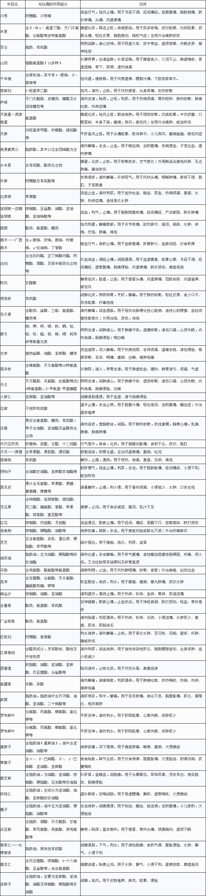 今天呢,僅選取57味中藥材和白酒微量的成分比較如下,一塊來看看吧?
